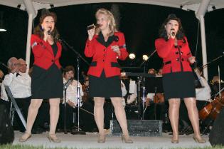 | W/Venice Symphony Orchestra: Star Spangled Swing Evening Under the Stars w/ "A Tribute to the Andrews' Sisters." Bonnie, Lacy, and Annie. April 2008 |